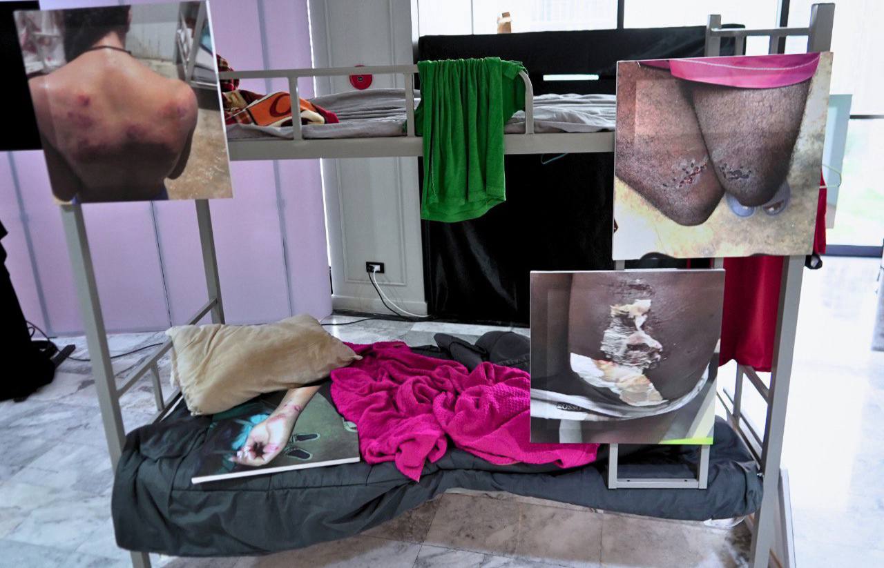 为唤起公众意识并推动政策变革,曼谷外国记者协会此次展览汇集了多位人口贩运受害者的真实证词。这些证词以匿名形式呈现,包括手绘图画、录音访谈和偷拍视频,详细描述了受害者在妙瓦底园区内的地狱般生活:从被电击拷打、长时间饥饿,到被迫目睹同伴遭受器官摘除或死亡的恐怖场景。一位来自菲律宾的年轻男子在证词中写道:“他们把我们关在没有窗户的房间里,每天工作18小时,如果业绩不达标,就会被吊起来用电棍殴打。我以为那是工作机会,却成了活死人。”另一位中国受害者则回忆道:“园区里到处是血迹,逃跑的人被当场枪杀。我们不是罪犯,我们是奴隶。”这些震撼人心的叙述已在泰国和国际媒体上引发热议,促使泰国政府加强边境巡逻,并与缅甸军方及中国当局协调更多联合救援行动。