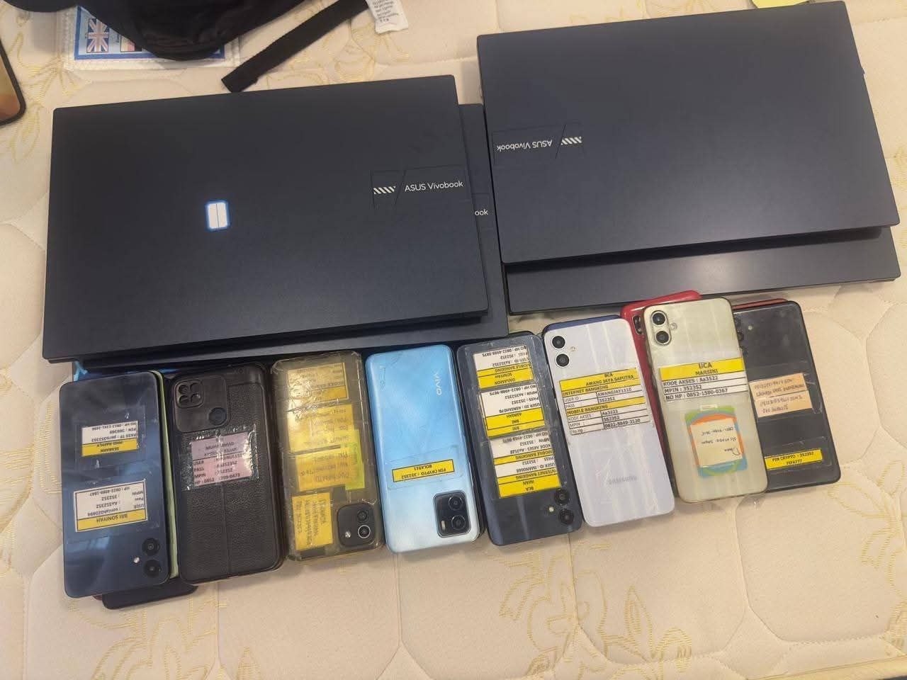 执法人员在现场发现并查获一处涉嫌利用信息技术从事非法网络赌博活动的场所,当场逮捕24名印尼籍嫌疑人,其中包括6名女性。行动中,警方扣押了19台笔记本电脑、68部手机以及24本涉案人员护照等关键证物。这些设备疑似用于运营非法在线赌博平台,相关活动正在进行中。