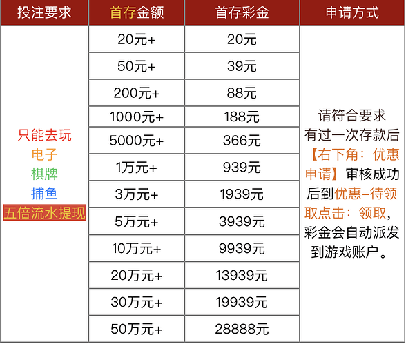 **注意:**本活动不与《PG电子以小博大》共享,一笔存款只能申请一项优惠!街机游戏,棋牌百家乐,21点,电子桌面游戏不参与此活动。