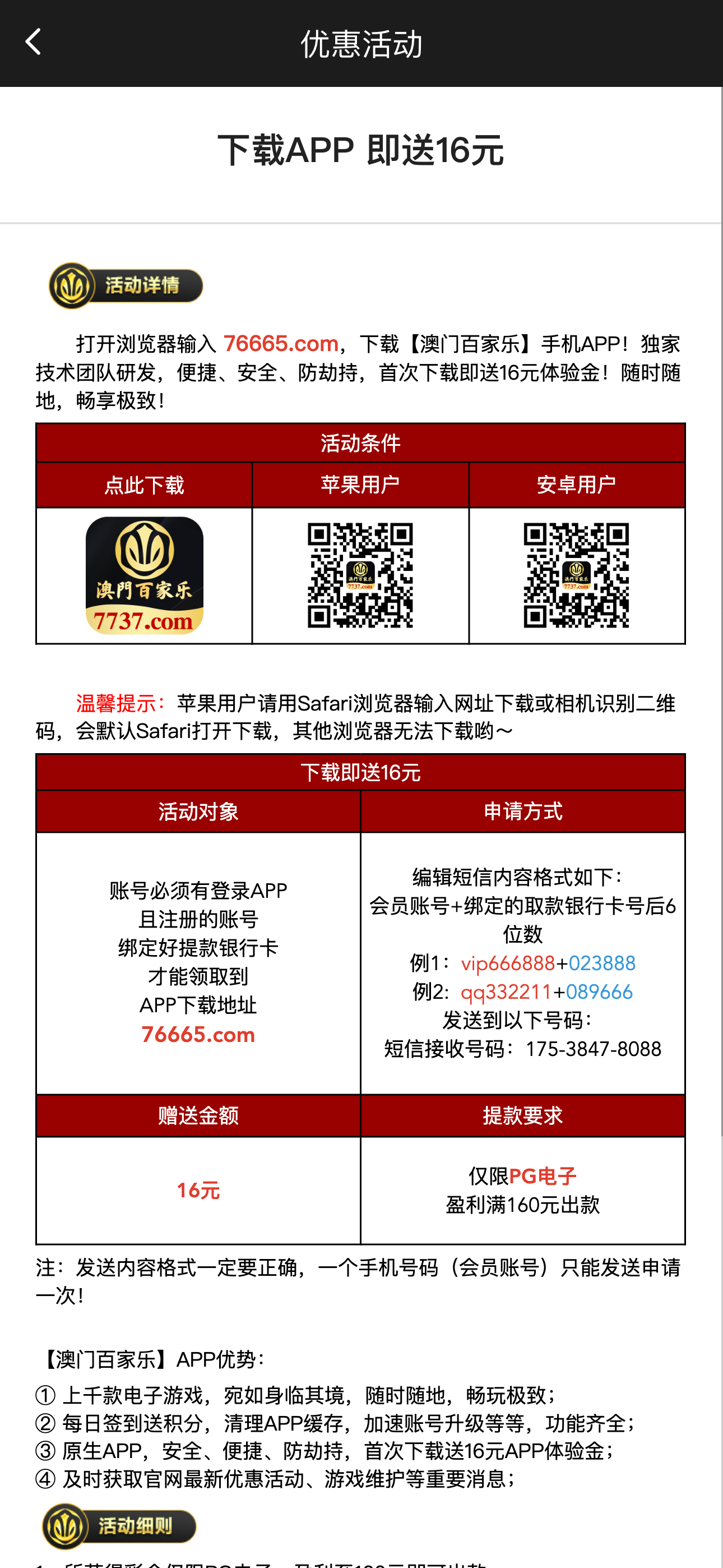 到账情况:严禁充值 领取方式:下载APP发送短信送16 安全系数:中 平台资历:自行调查 会员评分:★★☆☆☆ 官方网址:http://16761001.com 流水限制:自行查看