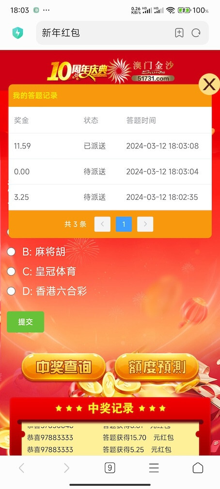 澳门金沙注册答对题领取11元彩金,有三次机会
